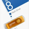 8GB USB Flash Drive USB 2.0 Smartbuy Twist, Pink is a compact and convenient flash drive with a memory capacity of 8 GB, designed for storing and transferring data. A bright and stylish pink case with a rotating mechanism (Twist) protects the device conne